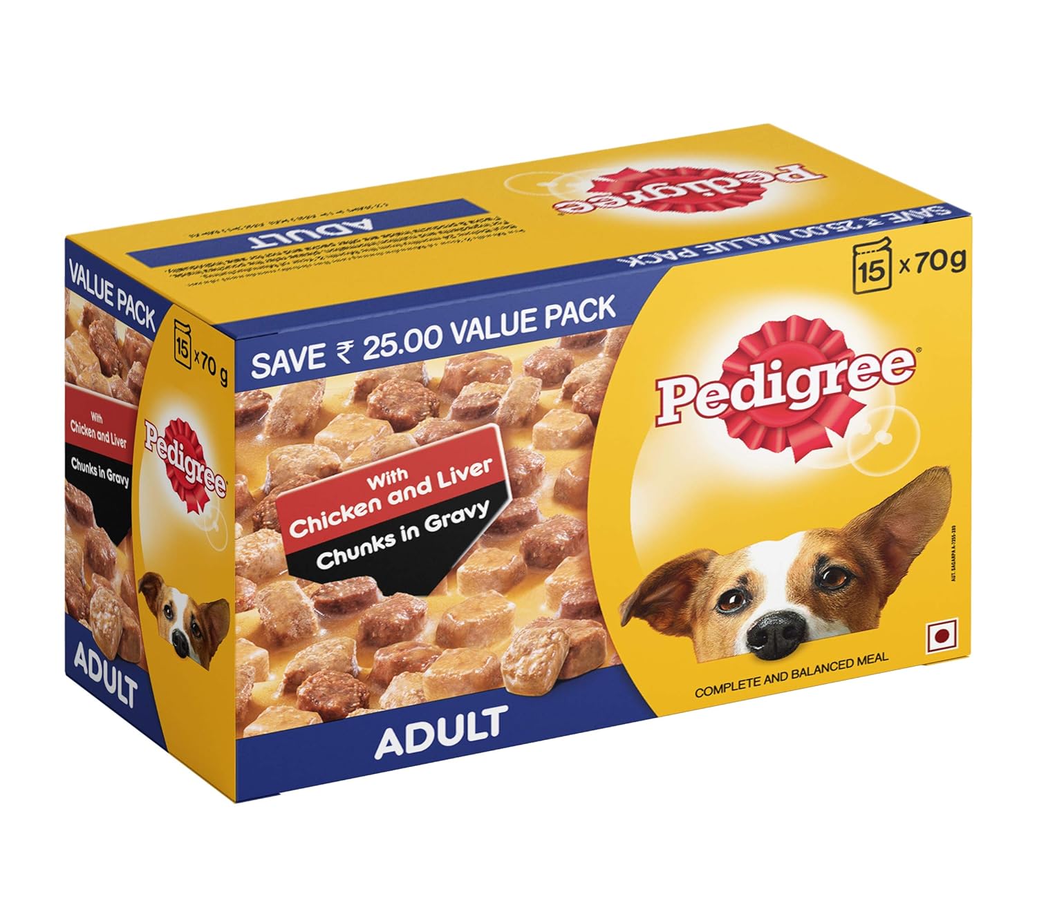 Pedigree Adult Wet Dog Food, Chicken & Liver Chunks in Gravy, 70 g (Pack of 15)