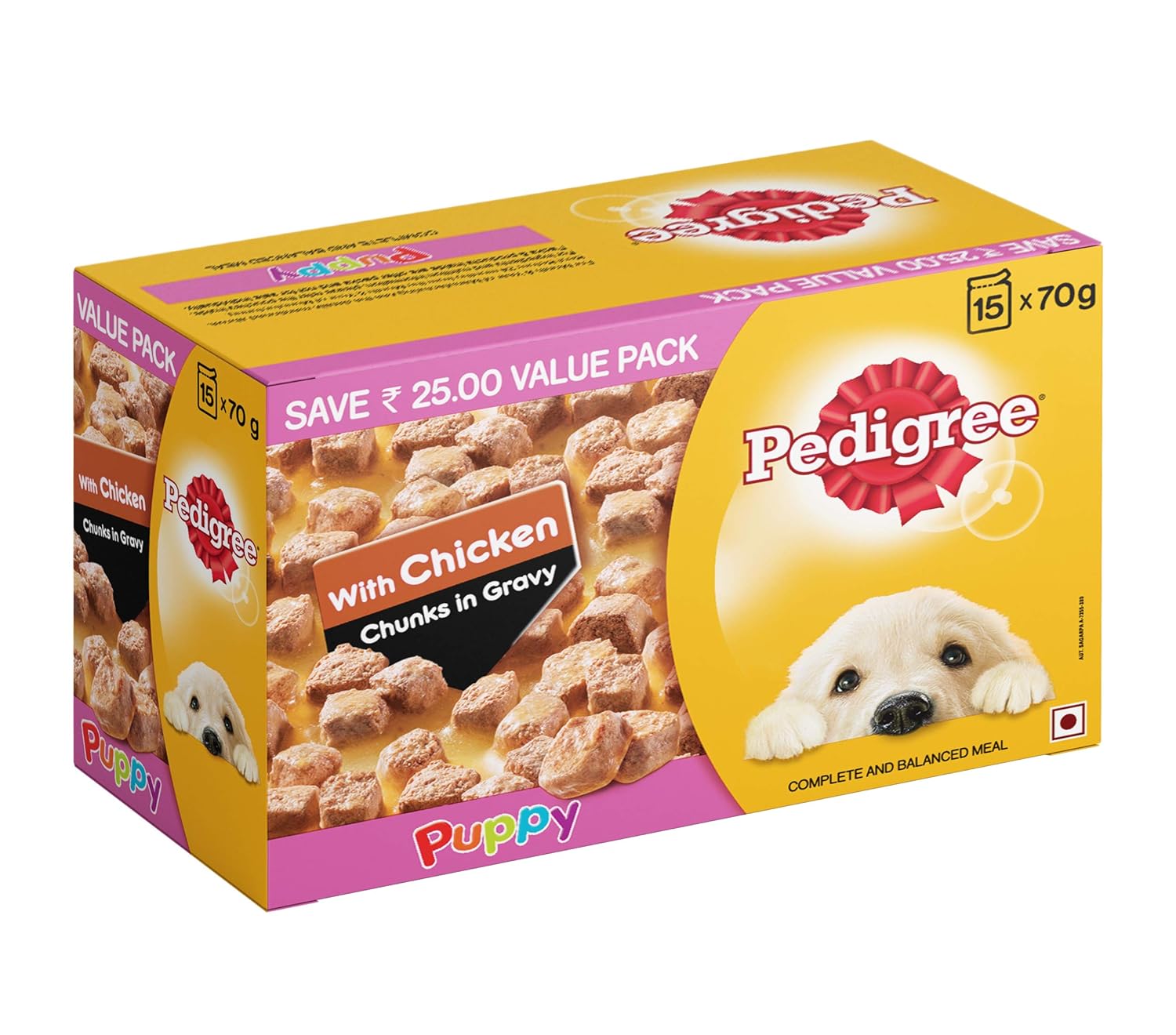 Pedigree Puppy Wet Dog Food, Chicken Chunks in Gravy, 70 g (Pack of 15)
